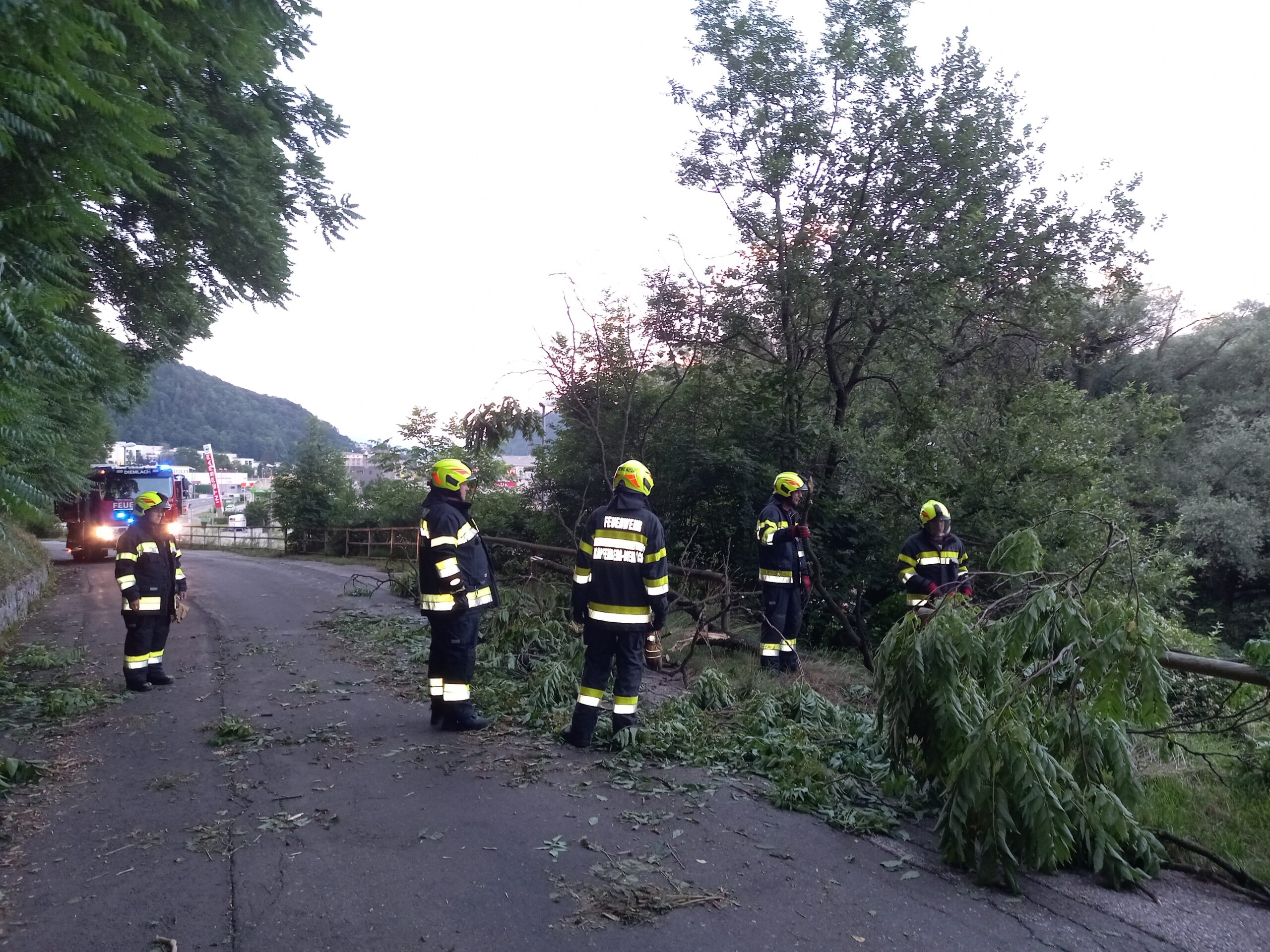 Am Dienstag, 05.07.2022, wurde die FF Kapfenberg-Diemlach um 21:27 Uhr erneut zu einem umgestürzten Baum in die Grazerstraße alarmiert. Nach der Ersterkundung wurde festgestellt, dass fast an der gleichen stelle wie beim gestrigen Einsatz ein umgestürzter Baum die Straße blockierte.