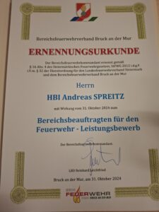 Außerdem wurde unser Kommandant HBI Andreas Spreitz zum Breichsbeauftragten für den Feuerwehr – Leistungsbewerb ernannt.