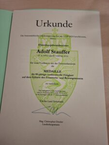 Bei der Arbeitstagung der Kommandanten des BFV BM am Donnerstag, 31.10.2024, in Kapfenberg wurde wieder ein Kamerad der FF Kapfenberg-Diemlach ausgezeichnet. EHBM Adolf Stauffer wurde mit der Medaile für 50- jährige verdienstvolle Tätigkeit ausgezeichnet.