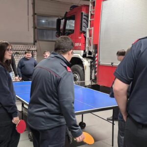 Bei dieser Übung kam der Spaß im „Atemschutzkäfig“ und beim Tischtennis nicht zu kurz.