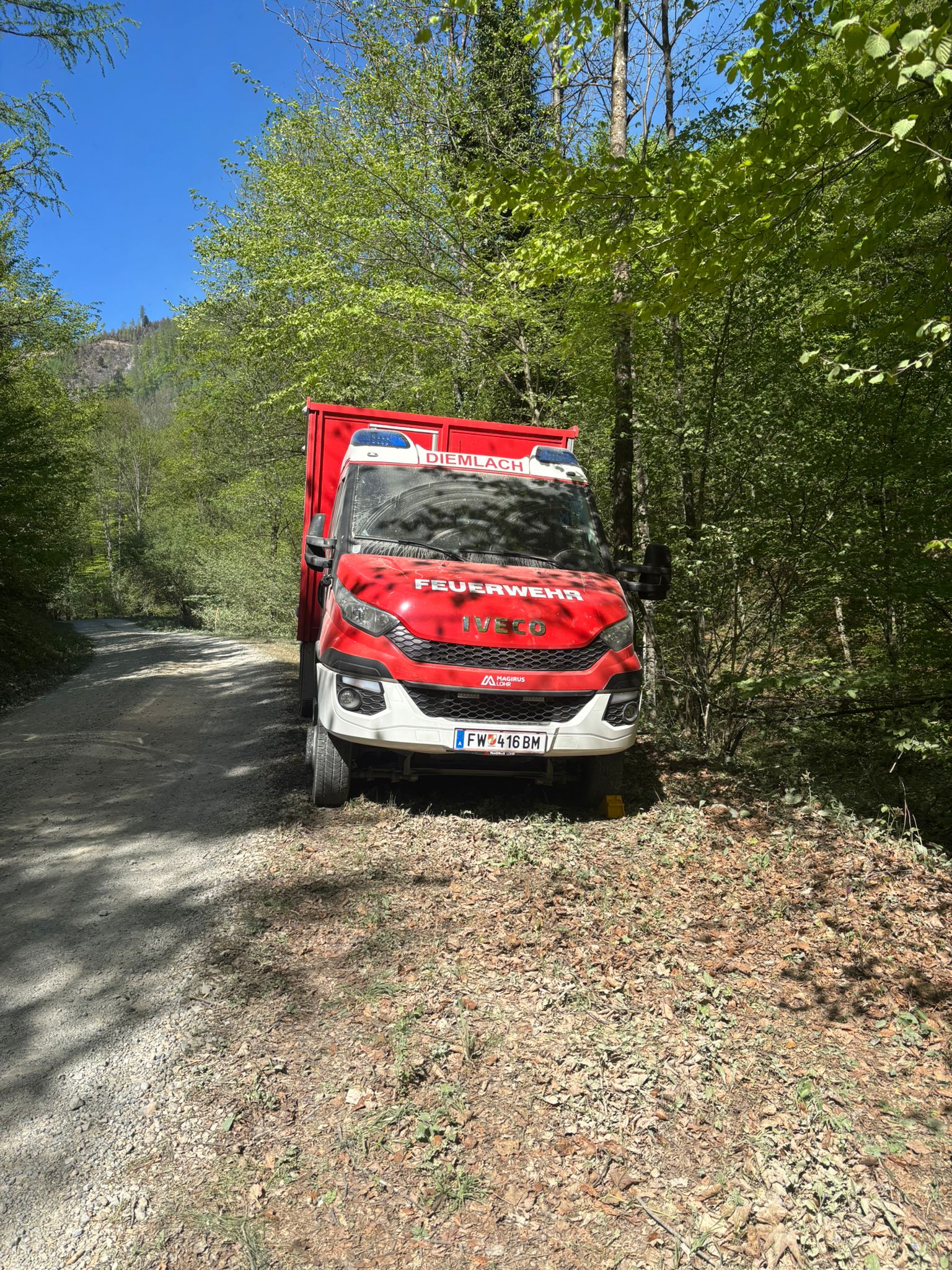 Am Sonntag, dem 27.04.2026, um 12 Uhr wurde der LKW Kapfenberg-Diemlach gemeinsam mit dem Waldbrandzug des KHD-42 (BFV Bruck/Mur) zu einem Waldbrand in Eisbach-Rein alarmiert. Insgesamt standen fünf unserer Kameraden im Einsatz – vier mit den Waldbrandcontainern und einer mit der Bereichsdrohne.