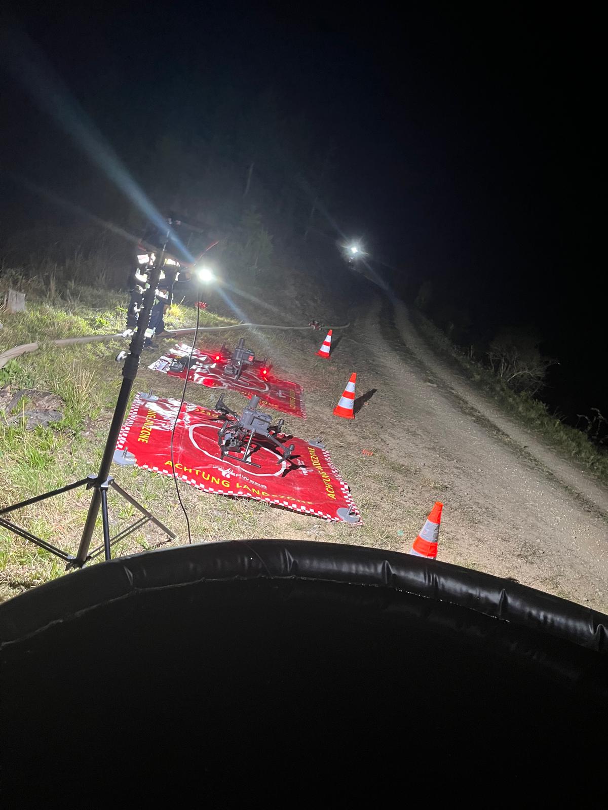 Die Kameradinnen und Kameraden des Waldbrandzuges waren bis 20:30 Uhr im Einsatz und rückten gegen 22 Uhr wieder ins Rüsthaus ein. Unser Drohnenpilot jedoch war die ganze restliche Nacht vor Ort.