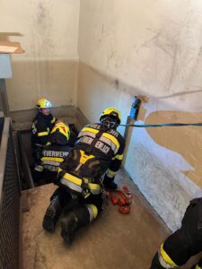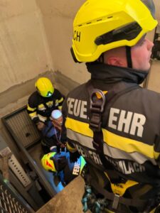 Ein abgestürzter Mitarbeiter in einem Liftschacht, der gerettet werden musste, stellte das 2. Szenario da.