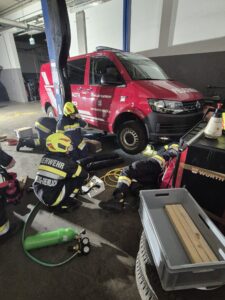 Erschwerend zu den beiden Einsatzszenarien hatten die Einsatzkräfte keinen Strom bzw. Licht im gesamten Übungsobjekt und konnten keine Hilfsmittel aus dem Werkstattbereich verwenden.